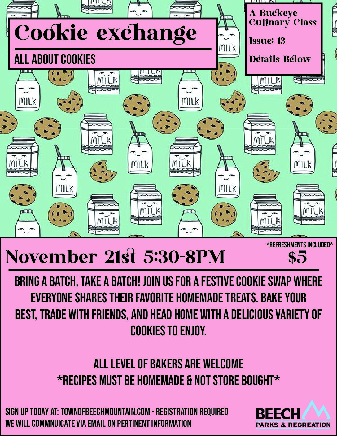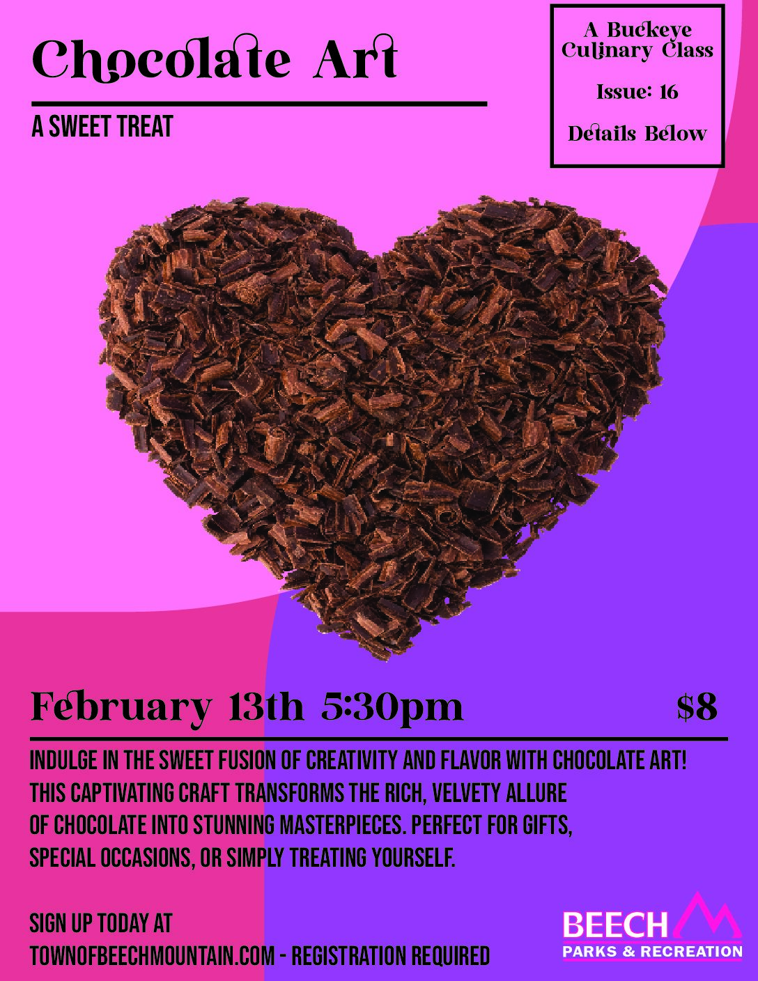 Fred and Margie Pfohl Buckeye Recreation Center 1330 Pine Ridge Rd, Beech Mountain, NC, United StatesDiscover the joy of handmade pasta in this interactive class! You’ll learn time-honored techniques for mixing, kneading, and rolling dough. You’ll leave with the confidence to bring those authentic Italian flavors to your own kitchen (and a full belly). Registration Required - Cost is $8 per person.